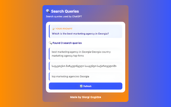 ChatGPT Search Queries Viewer är en webbläsartillägg för Chrome som gör det möjligt för användare att granska sökfrågor och externa begärningar som genereras under ChatGPT:s svar. Tillägget är särskilt användbart för utvecklare, SEO-specialister och tekniska användare som behöver insyn i hur AI-svar skapas. Med en lättanvänd popup-gränssnitt visar det extraherade sökfrågor på ett tydligt och läsbart sätt.